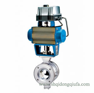 氣動V型球閥的關閉件是半球體上開有V字型開口,V型開口具有鋒利的刃口,在球體回轉過程中,關閉件之間有擦拭作用,對介質具有強有力的切斷力,球體的V型開口與閥座流道形成一個扇形區域,在回轉過程中可改變流道截面積,形成對介質的精確調節